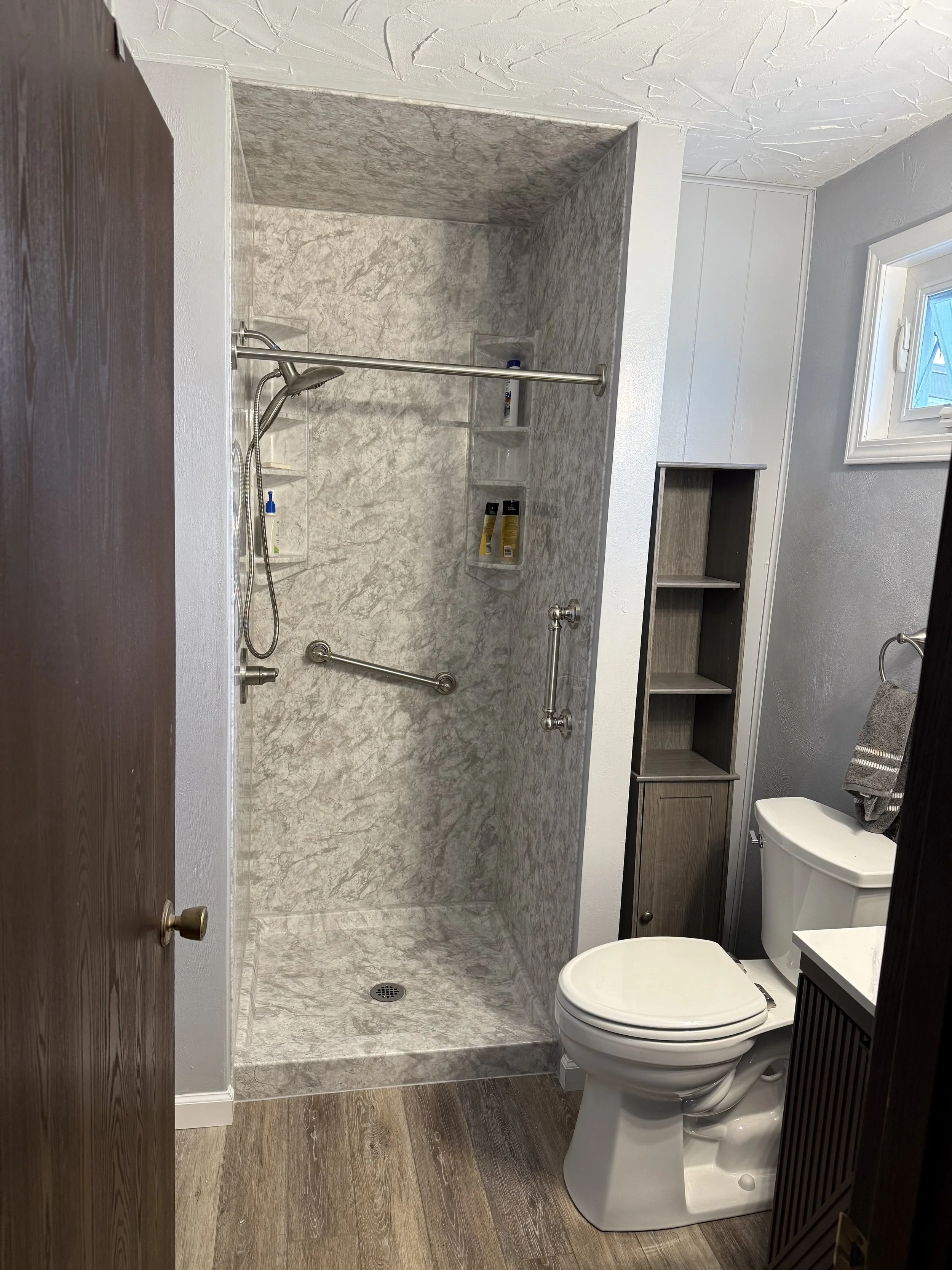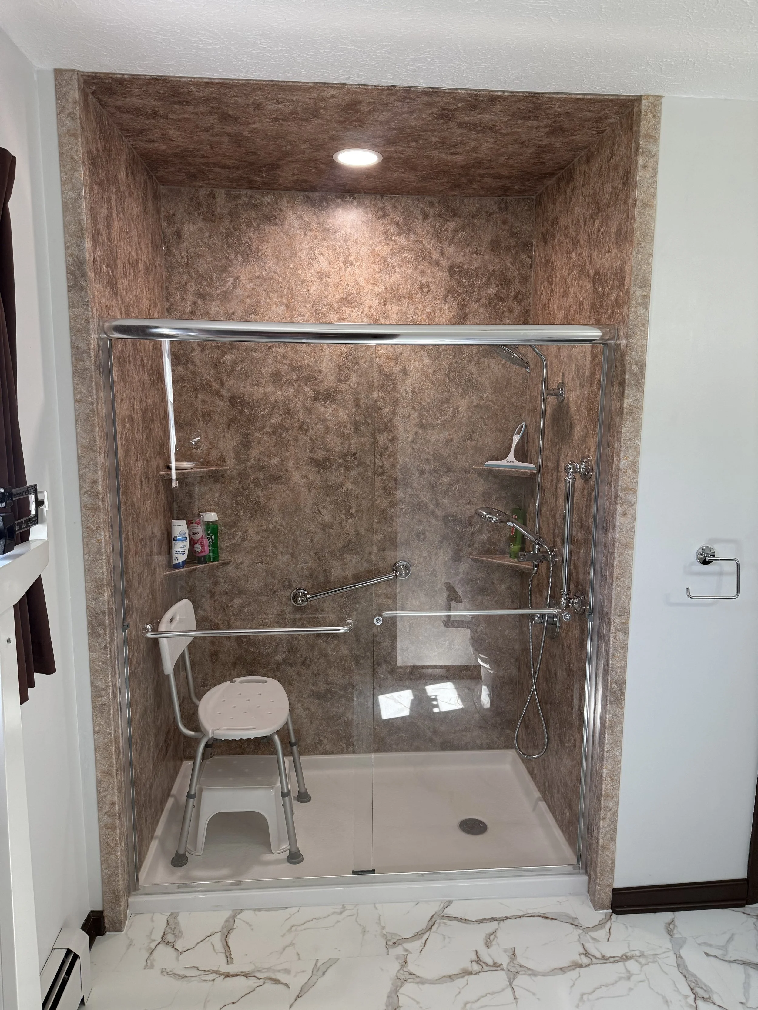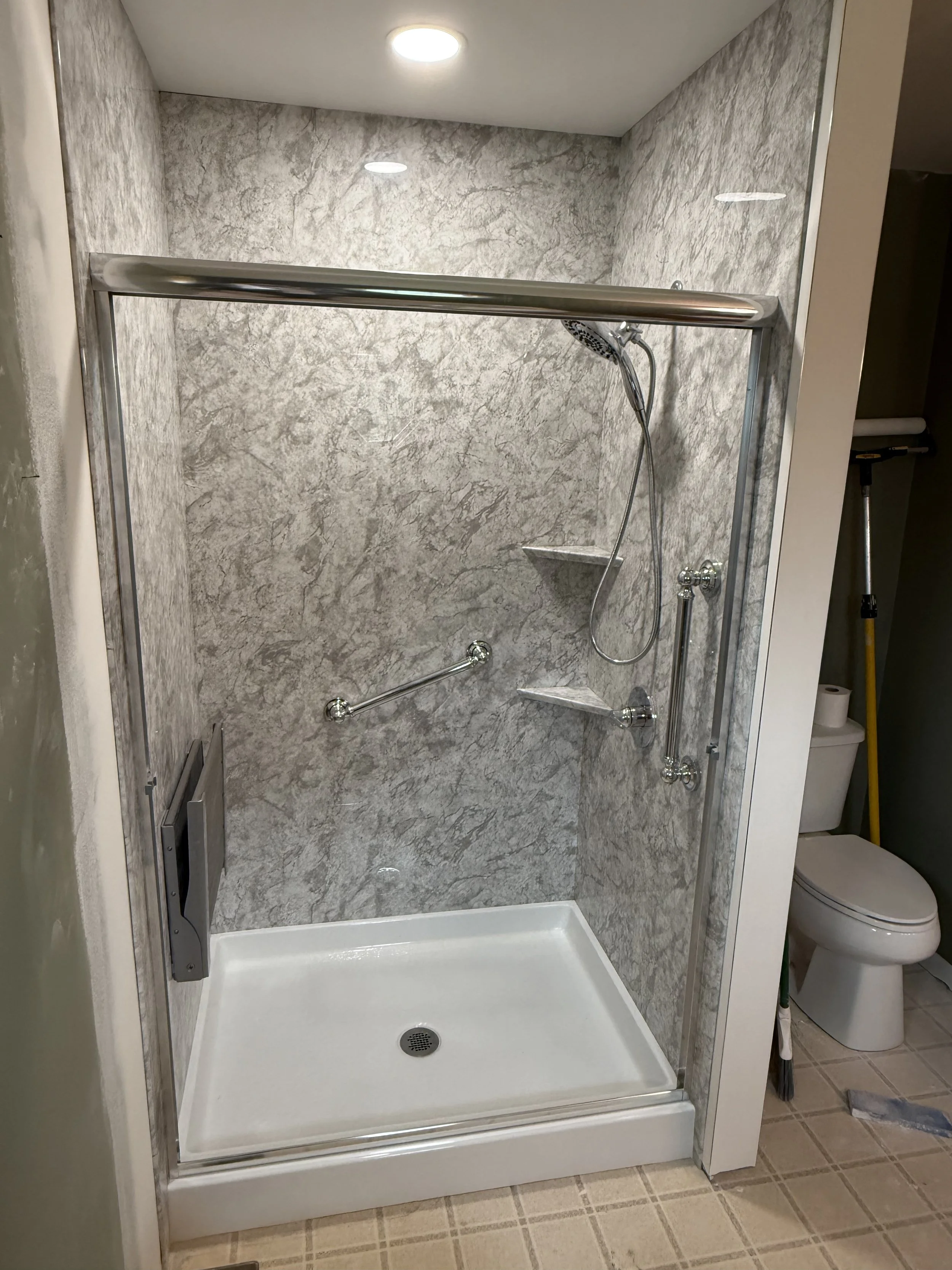 Our acrylic shower units offer a sleek, modern look with the convenience homeowners love. Designed for easy maintenance, their smooth, non-porous surfaces make cleaning quick and effortless. Installation is fast - typically completed in just two days so you can start enjoying your new shower without the hassle of a long remodel that tile demands. Available in a variety of sizes, colors, and finishes, each unit can be tailored to fit your space and personal style perfectly. Here are a few from past projects that we have completed!