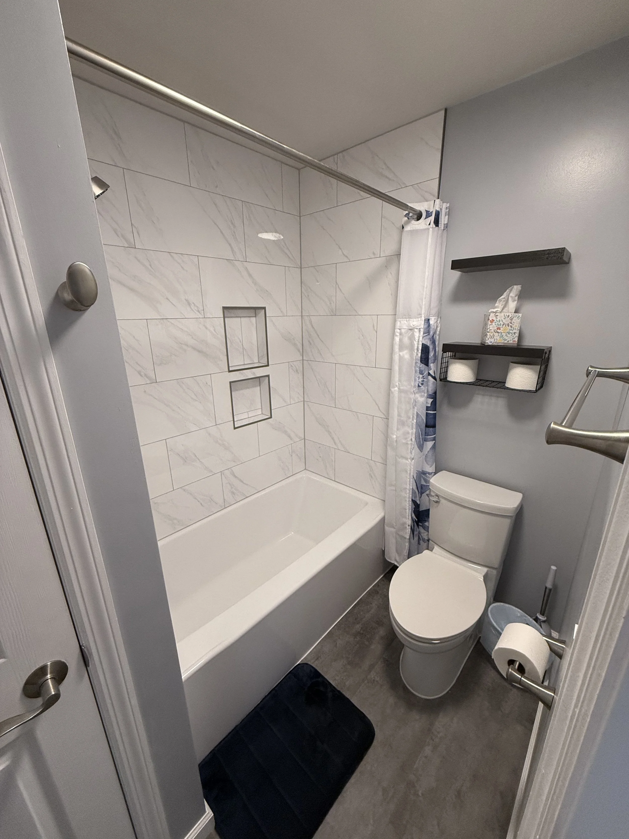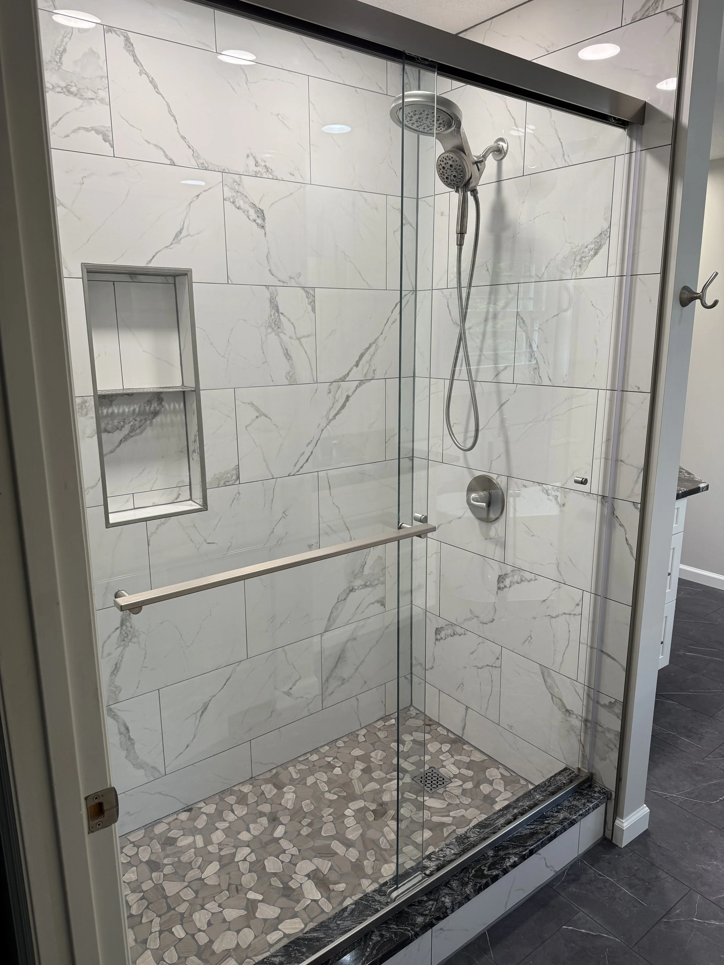 The Piktel family asked us to update both of their bathrooms into comfortable, updated spaces that they could enjoy. Each room was fully remodeled, starting with new vinyl plank flooring in both for a nice clean look throughout.